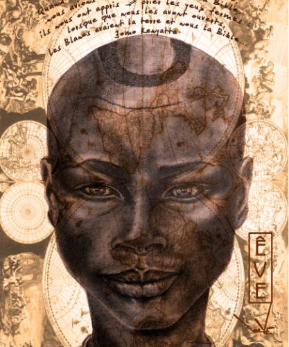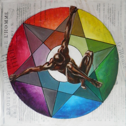 Technique mixte : collage, acrylique, huile, encre de chine.